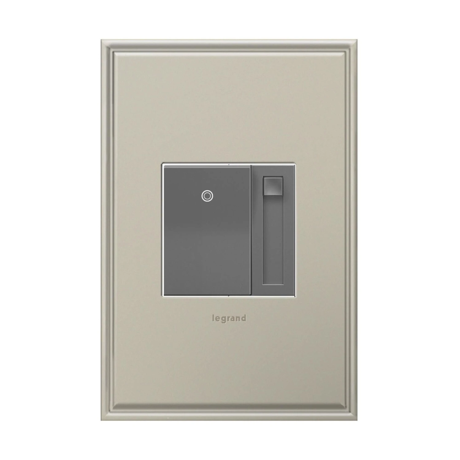 The Paddle Dimmer features a simple up and down switch control as well as a slider for dimming lights.