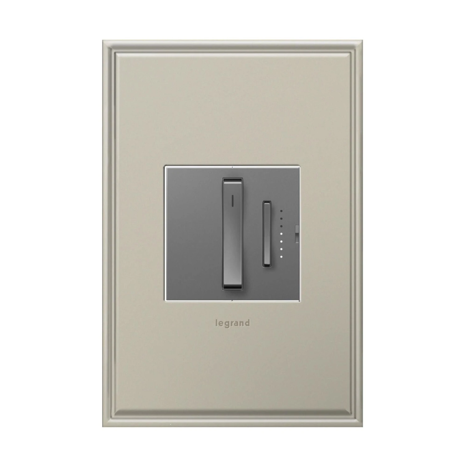 An innovative cross between a traditional toggle and a paddle switch, the adorne Whisper Dimmer features classic, elegant lines and a fluid motion, along with a convenient slider for dimming. Designed to support incandescent and halogen bulbs. Wall plate sold separately.