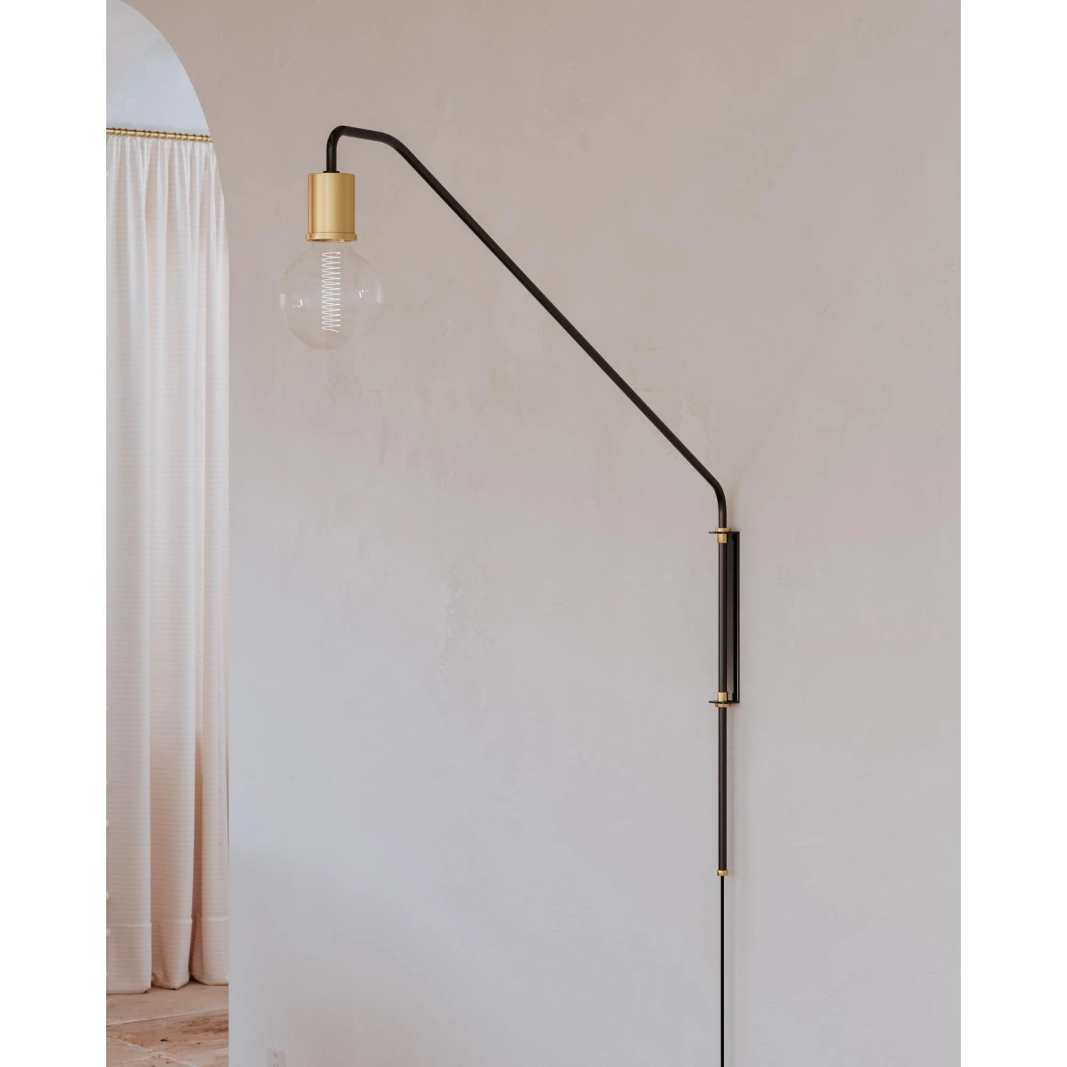Becca makes our minimalist heart beat, blending industrial and modern like a total pro. The portable wall sconce projects outward, swiveling left to right to spotlight any task. Flex your design eye by placing Becca over a reading chair in place of a floor lamp, bedside, or over a bistro table in an apartment where a chandelier may not be practical.Features – Blends industrial and modern styles. Use as a reading lamp or in place of a floor lamp. Swivels left to right.
