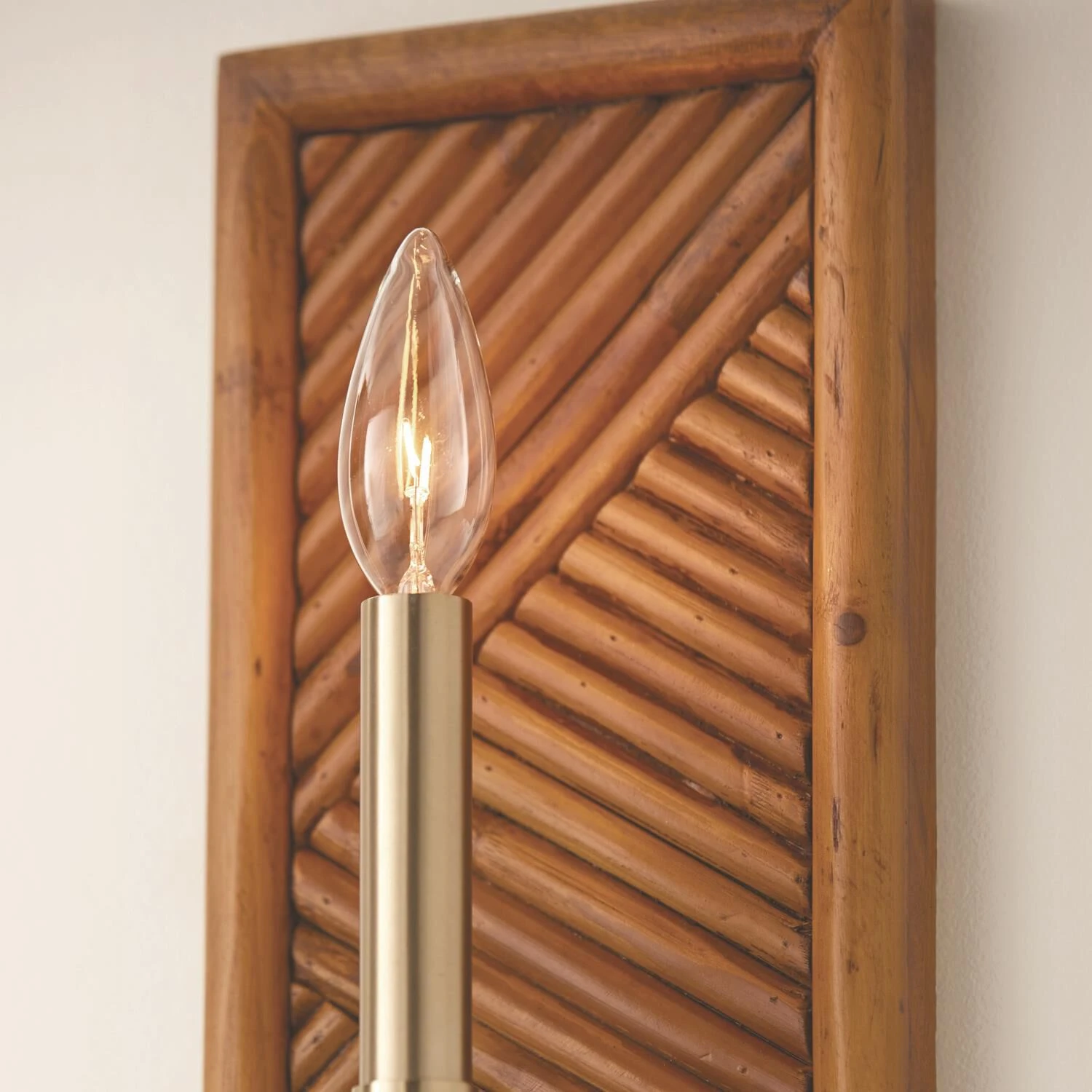 Structured and artistic, the Soleil Sconce beautifully brings the outdoors in. The hand-arranged natural bamboo backplate forms a geometric backdrop for the light, and the hints of Matte Brass create a soft, captivating look.