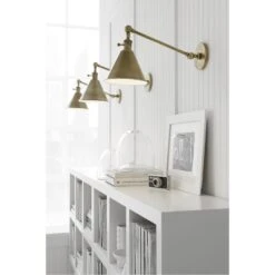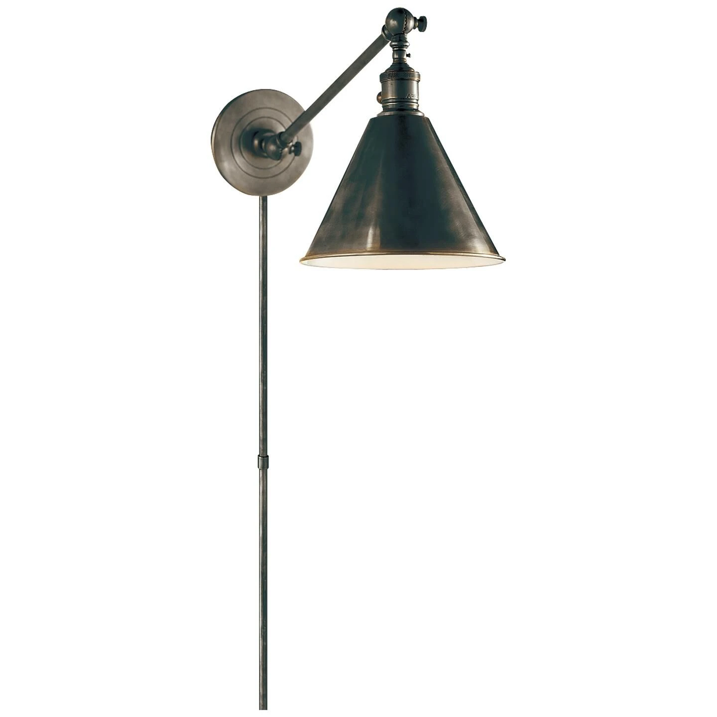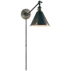 Honor your traditional sense of style with the handsome EF Chapman Boston wall swing lamp from 1800lighting. This exquisite swinging wall lamp is a perfect choice for the bedroom, office or workshop, as it features a unique, swinging arm design that provides you with targeted illumination as you read, work or play. Designed by celebrated designer E.F. Chapman, who serves as Visual Comfort’s chief designer, this fixture honors the artist’s penchant for designing classically influenced wall lights with traditional silhouettes. Each Boston wall swing lamp has a 2-inch by 7-inch by 5-inch shade and comes with a cord cover for clean, streamlined installation. It requires a single incandescent 60-watt light bulb and draws 120 volts. 1800lighting offers this gorgeous swing arm sconce in an assortment of stylish finishes, including antique nickel, bronze, hand-rubbed antique brass and polished nickel.