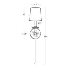 Updated opulence comes to mind with this sconce, which wears an antique gold leaf finish on its backplate, bobeches and elongated stem. An antique-inspired candle holds the crisp, modern shade. Clove would be at home in modern or traditional interiors alike try two in a living room flanking a fireplace.