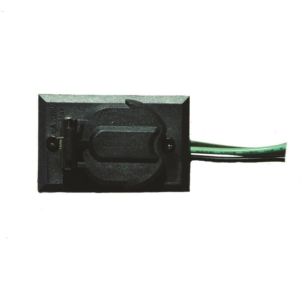 The Acclaim convenience electrical outlet is made of durable UV resistant plastic. It is matte black color. .