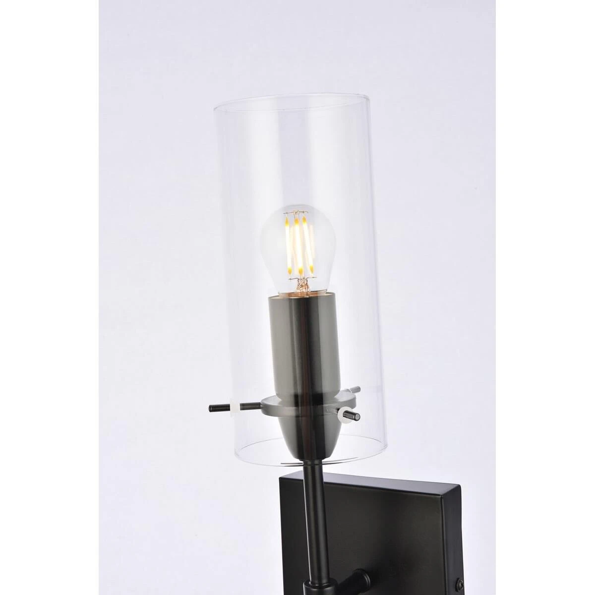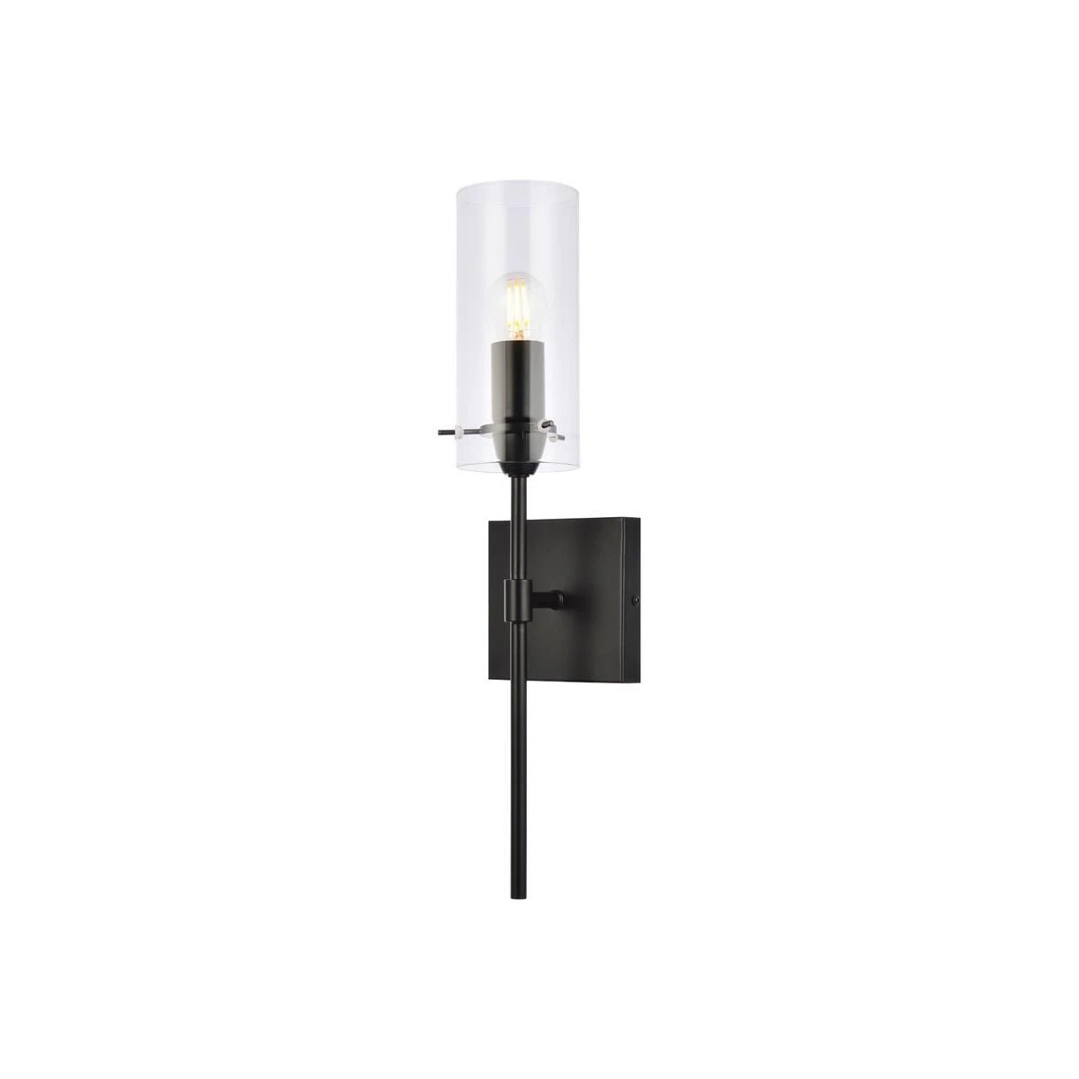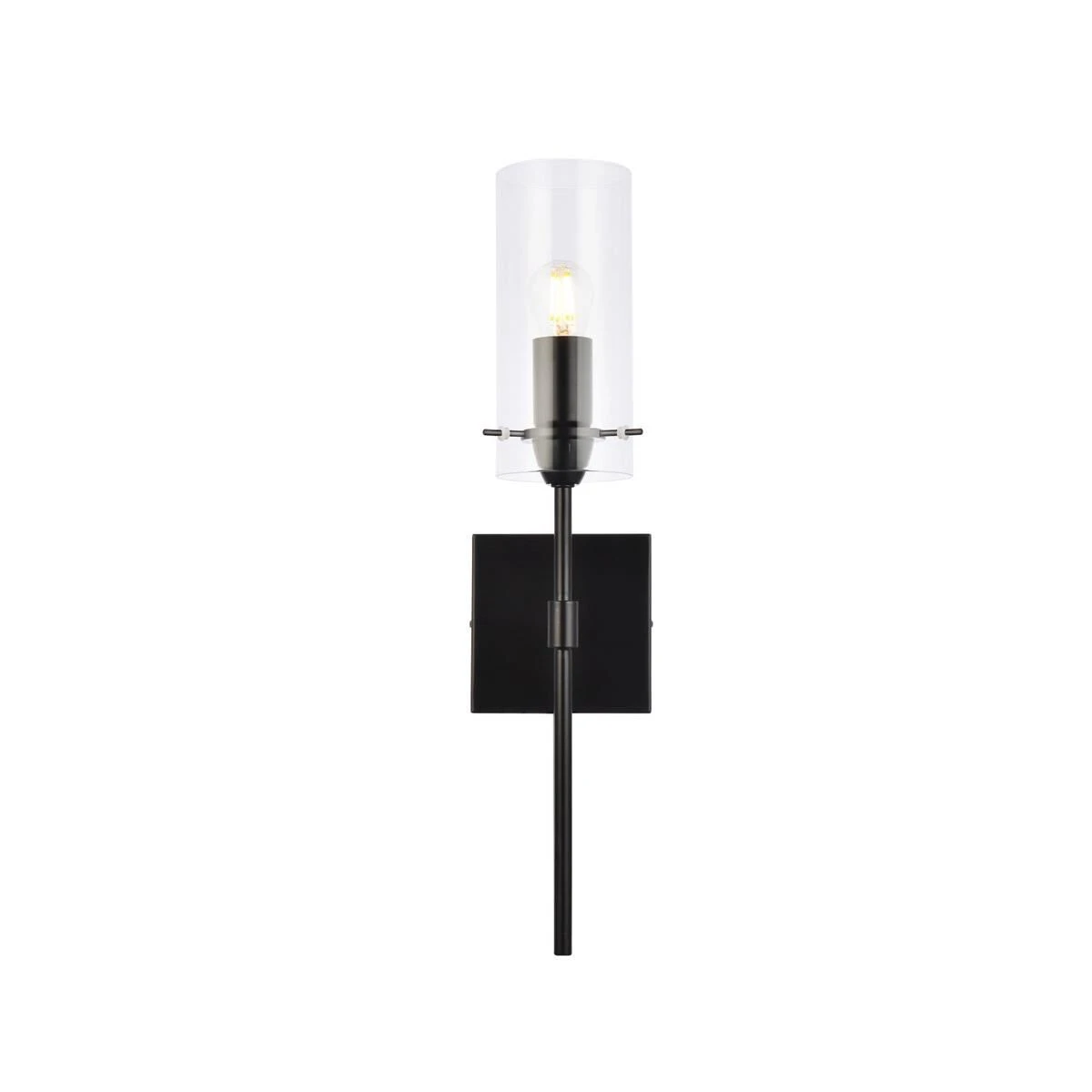 Brighten your space with the Elsreth Collection wall sconce. The cylinder glass and straight arm creates a modern candle lit look. Available in black or brass finish this lamp will illuminate the room. This product is dimmable and requires one E26 socket. Light bulbs not included.