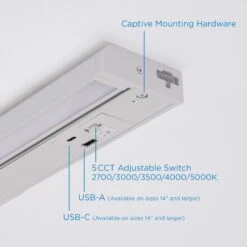 Illuminate your space with the sleek and energy-efficient Elena LED Undercabinet Light by AFX. Constructed with a combination of steel and acrylic, this light features a frosted acrylic diffuser that provides a soft and uniform illumination. With its 5-in-1 CCT (Correlated Color Temperature) and dimmable functionality using a TRIAC/ELV dimmer, you can easily adjust the lighting to suit your preference. Additionally, this undercabinet light is Energy Star certified and Title 24 compliant, ensuring energy efficiency and compliance with regulations.Features – Item contains a white acrylic diffuser.5-in-1 CCTDimmer: TRIAC/ELV5-in-1 CCT,cETLus,Dimmable,Energy Star,Title 24Specifications – CRI – 90Location Rating – Damp
