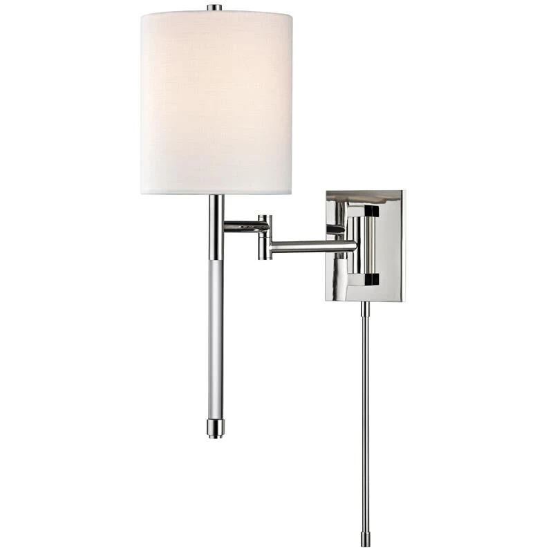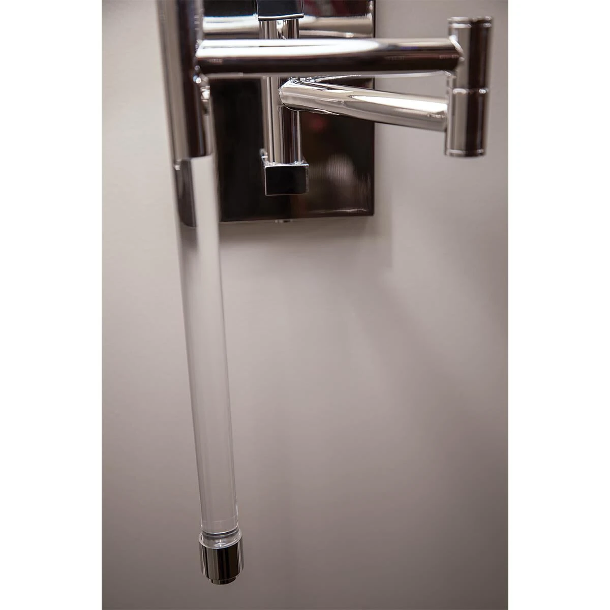 Englewood is a manually adjustable wall sconce with a two-part swing arm. It adds a long tail of clear acrylic for a contemporary, sophisticated look.