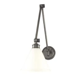 Sleek, sharp, and shaped for superior functionality: Exeter is a testament to the principles of modern design. The backplates swivel joint works in conjunction with three arm joints to allow precise adjustment of the lamps direction. Exeters wide range of motion makes it an ideal reading lamp. Exeter also saves space when mounted above a desk, to illuminate bill-paying and other household tasks.