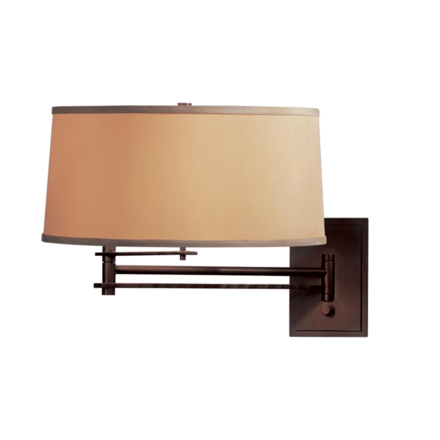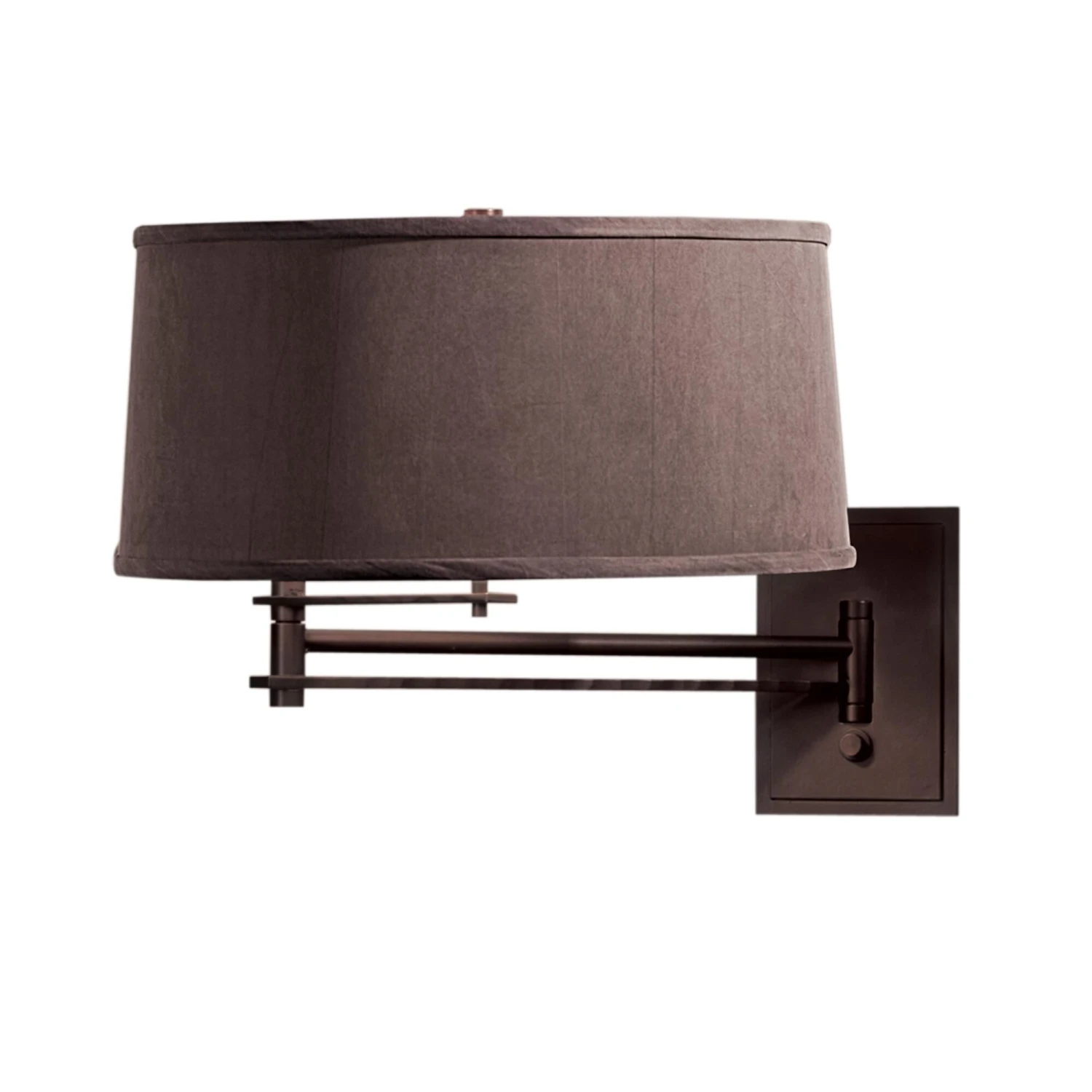 Direct wire wall sconce with shade options: Forged Bar swing arm.