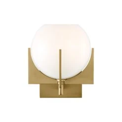 The Abbott one light wall sconce in burnished brass offers shadow-free lighting in your powder room, spa, or master bath room. An updated take on a retro design, the Abbott vanity lights bring a splash of mid-century modern inspiration to your decor. Crafted of metal and suited for damp spaces, this streamlined fixture is offered in three sizes to fit comfortably above a vanity or single as sconce. Round-shaped milk glass shades in a satin hue complete the look and diffuse brightness.