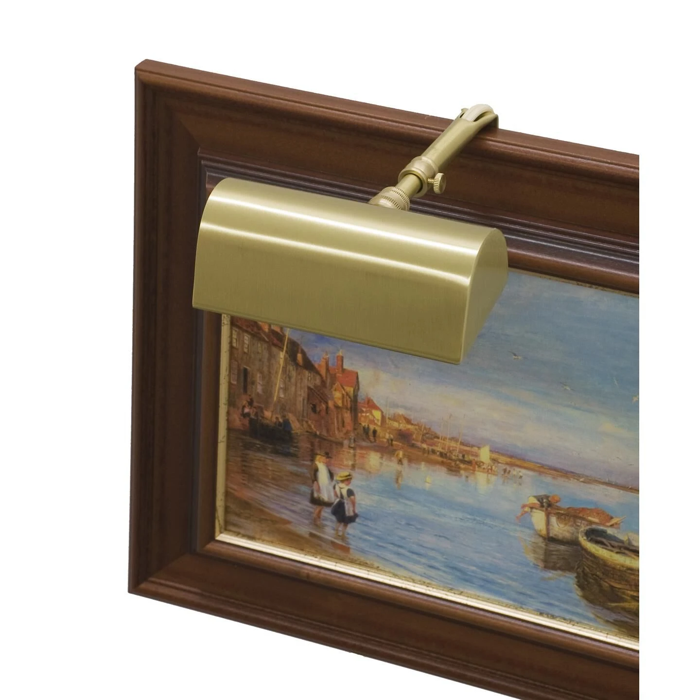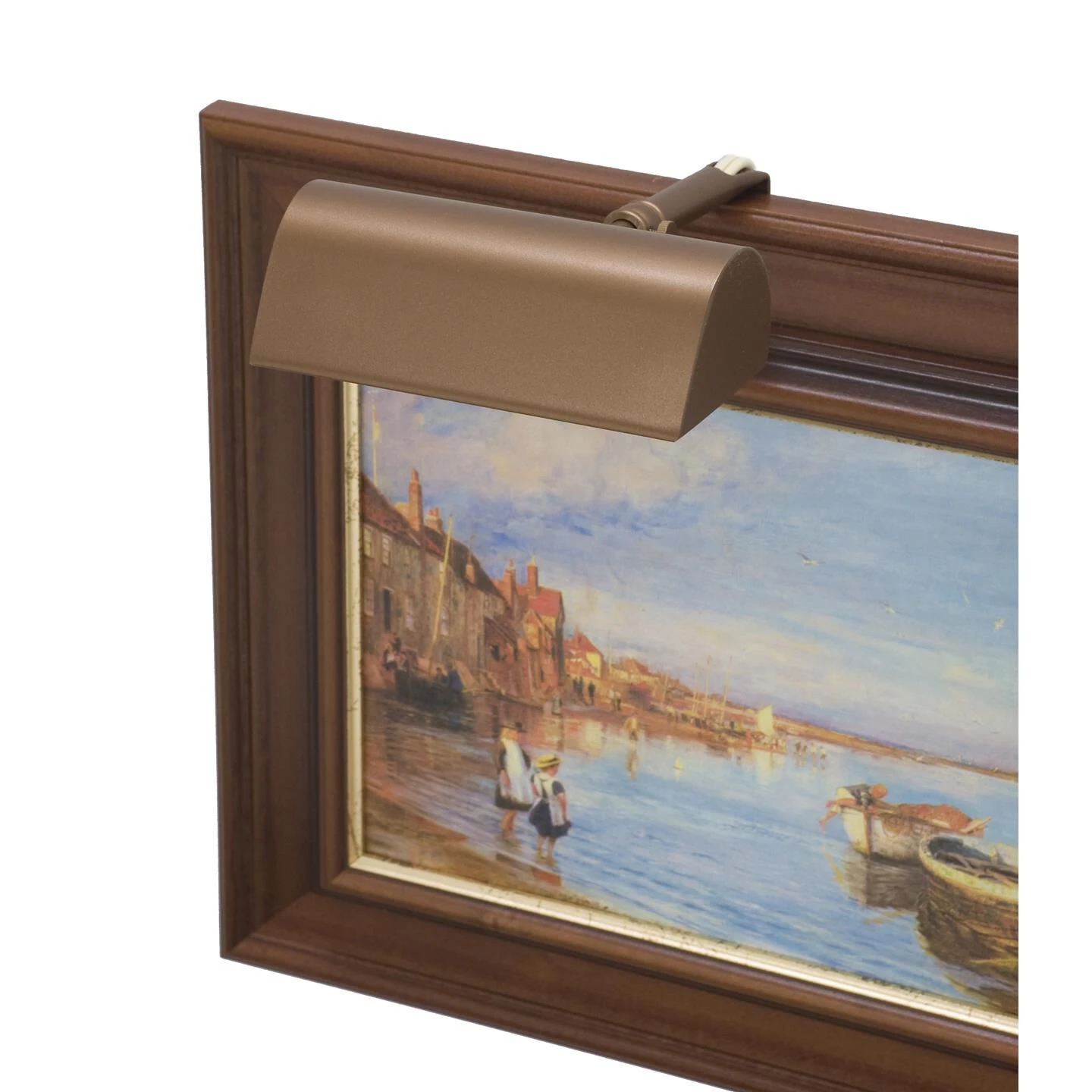 Traditional picture light with 8 foot ivory cord with in-line switch 3 foot from plug. Adjustable 5 inch -7 inch horizontal arm with ball swivel at shade.