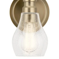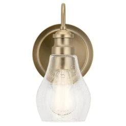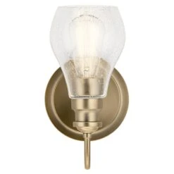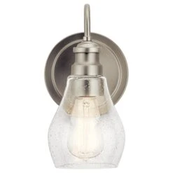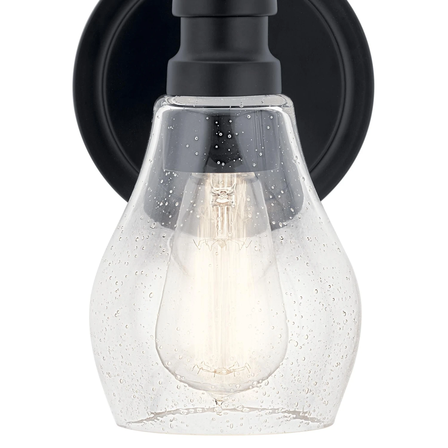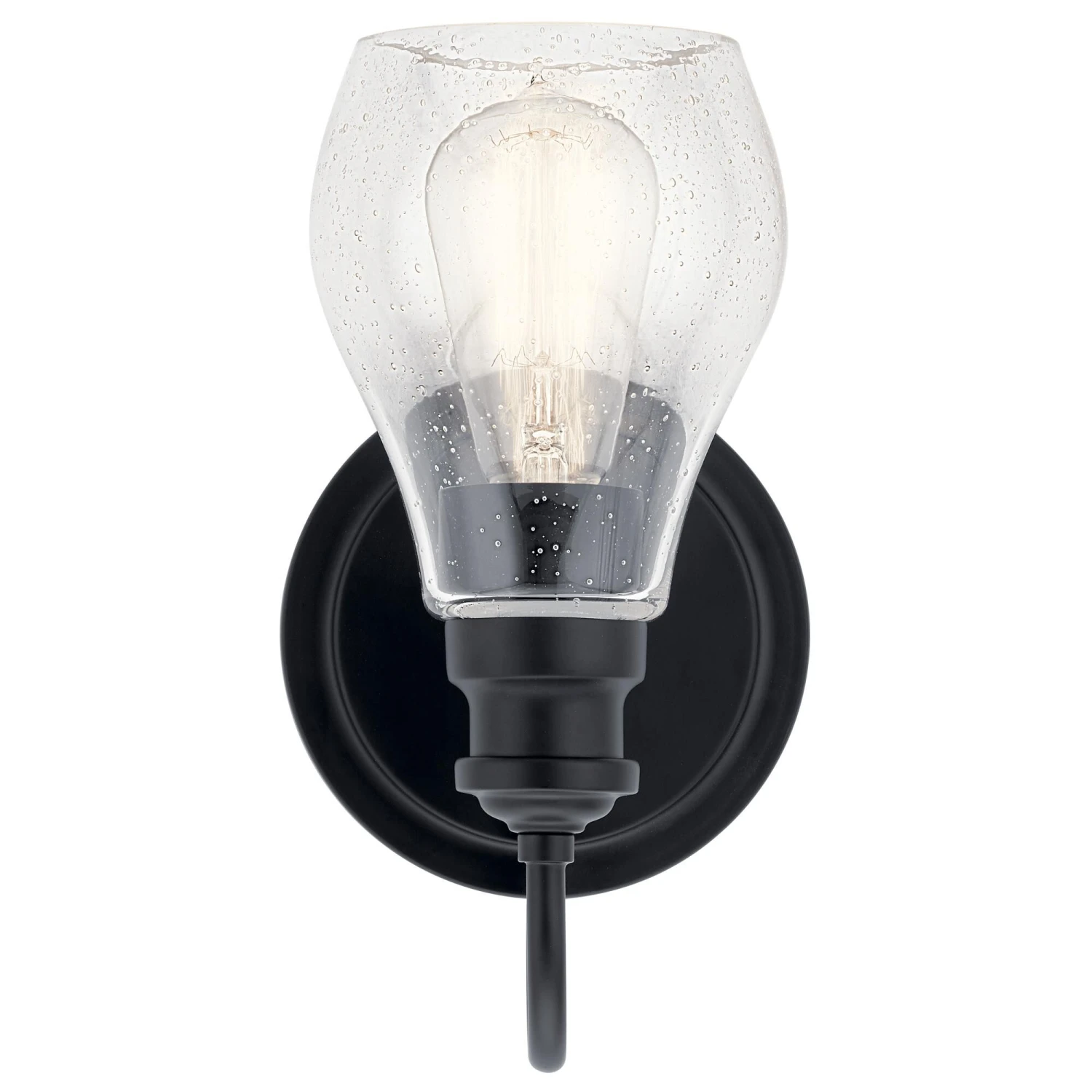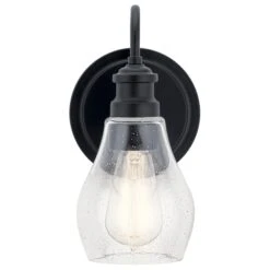 An updated twist on a popular vanity lighting style, this Greenbrier collection 1 light wall sconce’s teardrop-shaped shade features a clear seeded glass for added visual interest. Tailored and a subtly detailed arm in a brilliant Black finish bring a sophisticated feel.