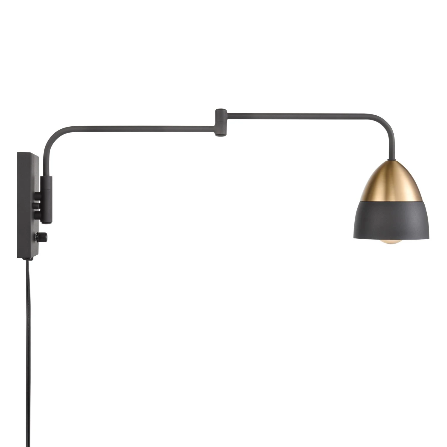 The Milla collection has a minimalist design with thin lines, metal shades and a two-tone charcoal black and brushed gold finish. Each piece in this collection has a unique sculptural appeal.