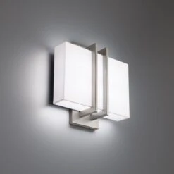 A harmonious combination of clean crisp fabric and brilliant architectural styled metal finishes form a refreshing design. An incorporated switch allows color temperatures to be customized with 2700K, 3000K or 3500K light to enhance decor. ADA compliant and perfect for hospitality applications. Universal design enables horizontal and vertical mounting. Luxe materials delivered with a golden touch.