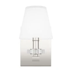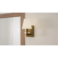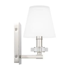 Turn a primary or guest bedroom into a high-end hotel with the Kelsey Glen sconce. This light casts a soft, ambient glow thanks to its etched glass shade. Choose polished nickel for classic style or select the weathered brass finish for a nod to antique design.