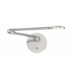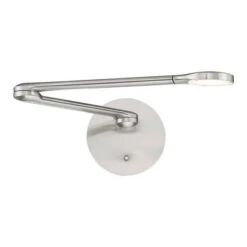 Contemporary task lamp for wall or desk applications. Personalized illumination with fingertip control in your private bedroom, office or workspace where functional down lighting is needed for effective reading. Ideal for senior living centers and hotels. Arm adjusts horizontally 180 degrees while head rotates 300 degrees. Available in black or white textured, or brushed nickel finish,