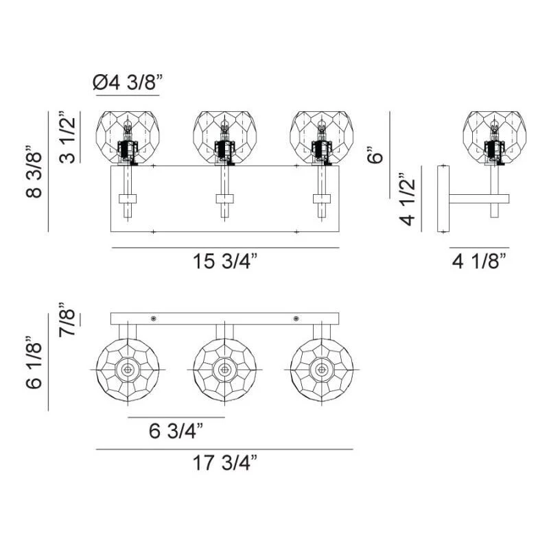 - – Incandescent: 3 Light – Candelabra Base E12 40 Watt