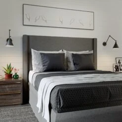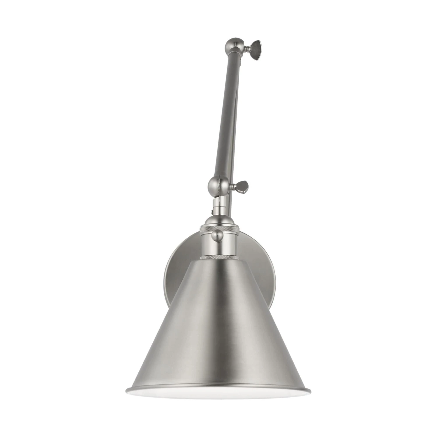 The Sea Gull Collection Salem one light wall sconce in Midnight Black is a sleek and stylish wall lamp that will add a touch of modern cool to any room. The arm extends out from the wall to support the cone shaped shade that is angular yet rounded. The single or double arm sconce features a rotating arm, and the shade can swivel and tilt to provide ample focused illumination that making it ideal to place bedside. Available in four brilliant finishes accented with a white shade interior.