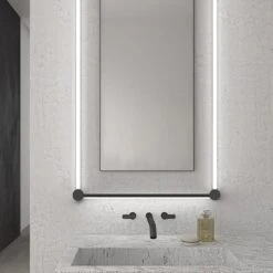 A system of linear tubes, set within the geometry of surface-mounted cylinder brackets, rotate individually to direct the LED illumination in 360 degrees along their axis. Arranged in a linear pattern or along a single path, the possibilities for compositions are endless and unlimited in scalability. Set on a wall, in line behind a bed, the rotatable luminaires provide the variability of direct or indirect illumination.