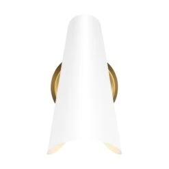 The Tresa one light sconce by AERIN for Generation Lighting is a striking design on a stylish single arm frame, featuring a black metal shade inspired by the shape of classic task lighting, focusing illumination downward. It is Mid-Century Modern in character, while the conical shades are designed with an open edge to allow additional light to pass through, as a contemporary twist. A perfect addition to a hallway or study.