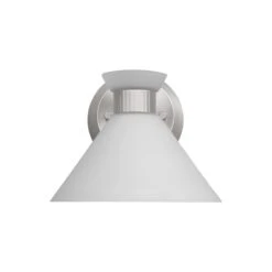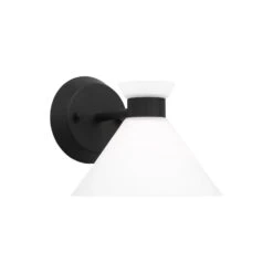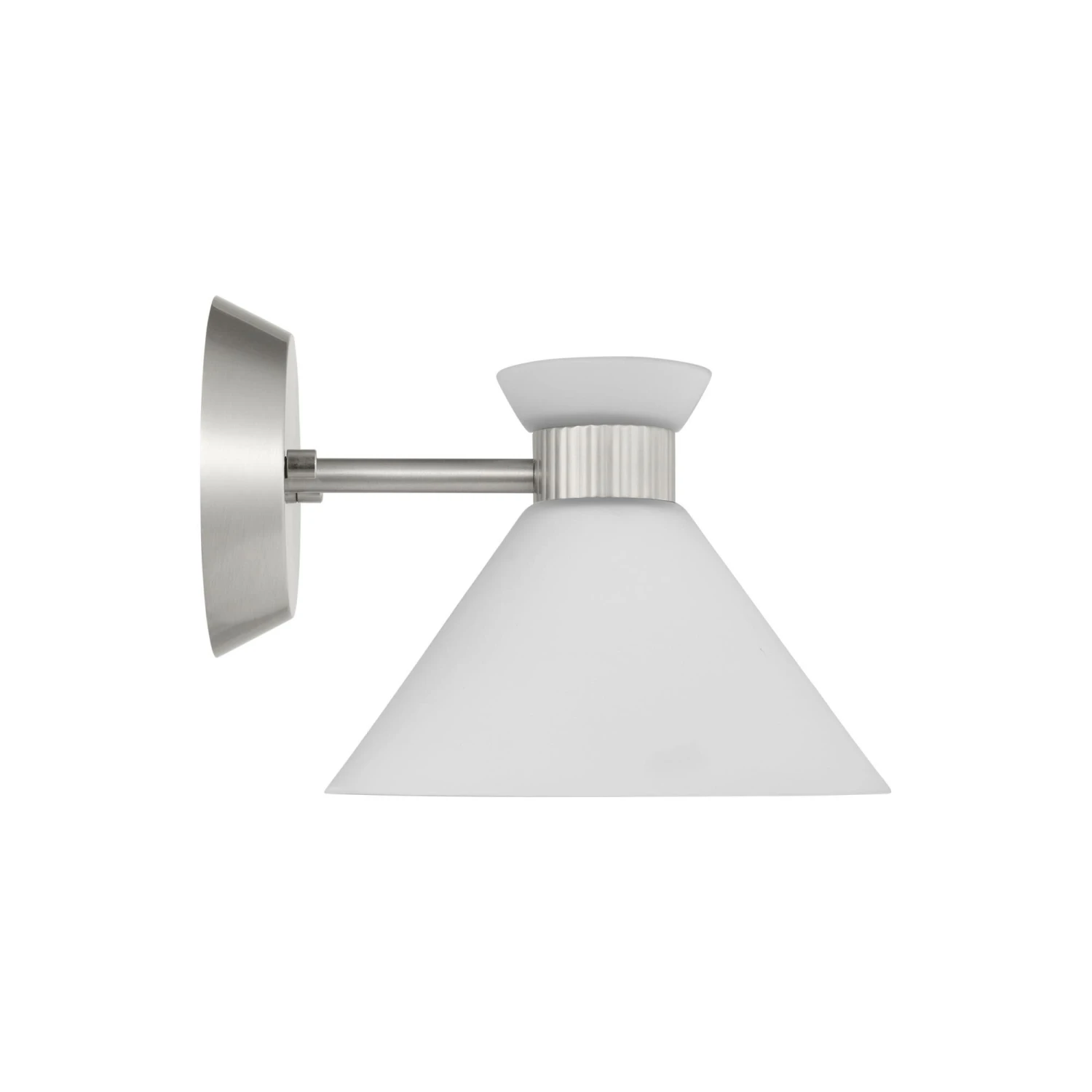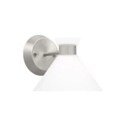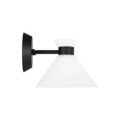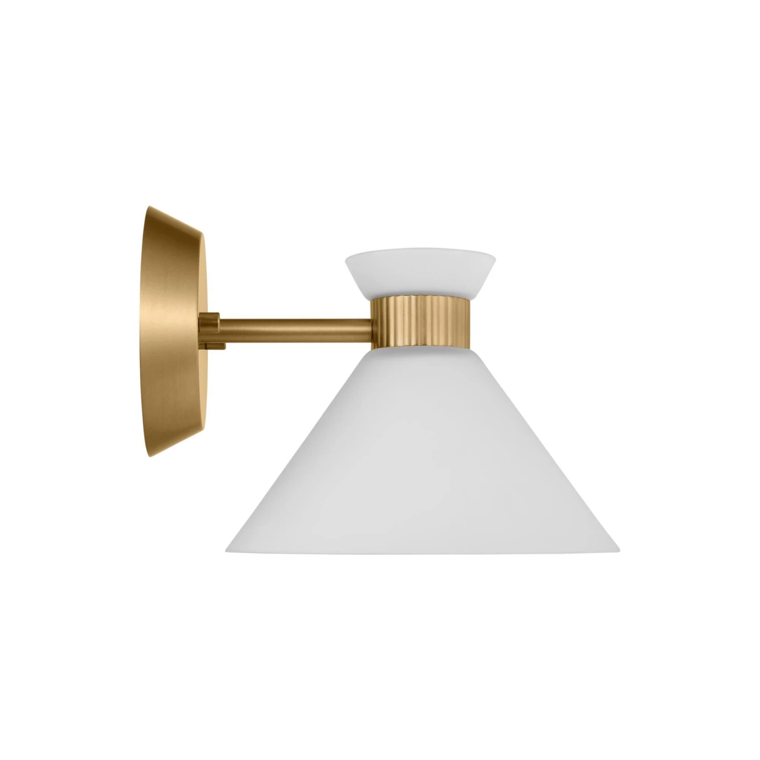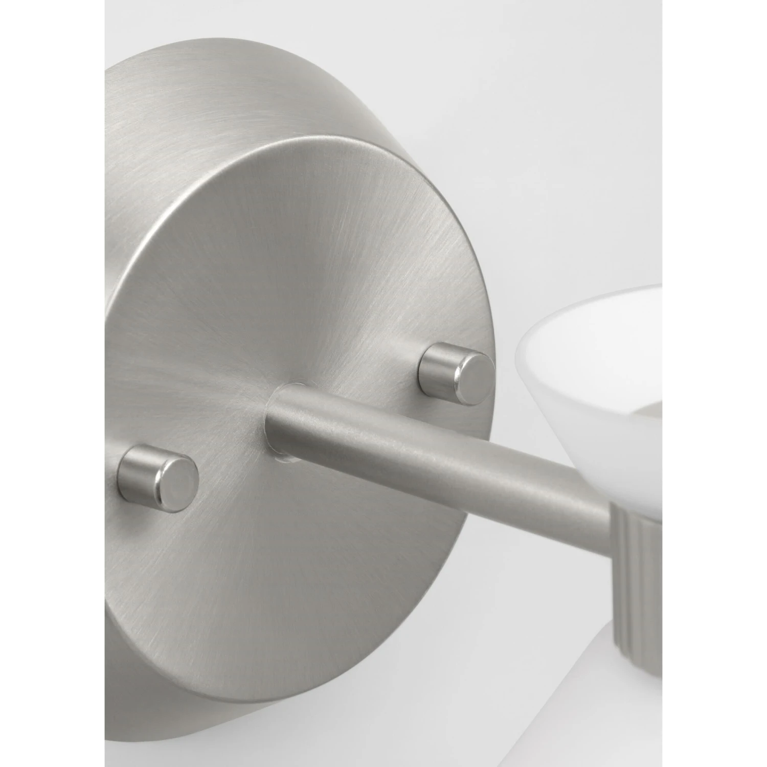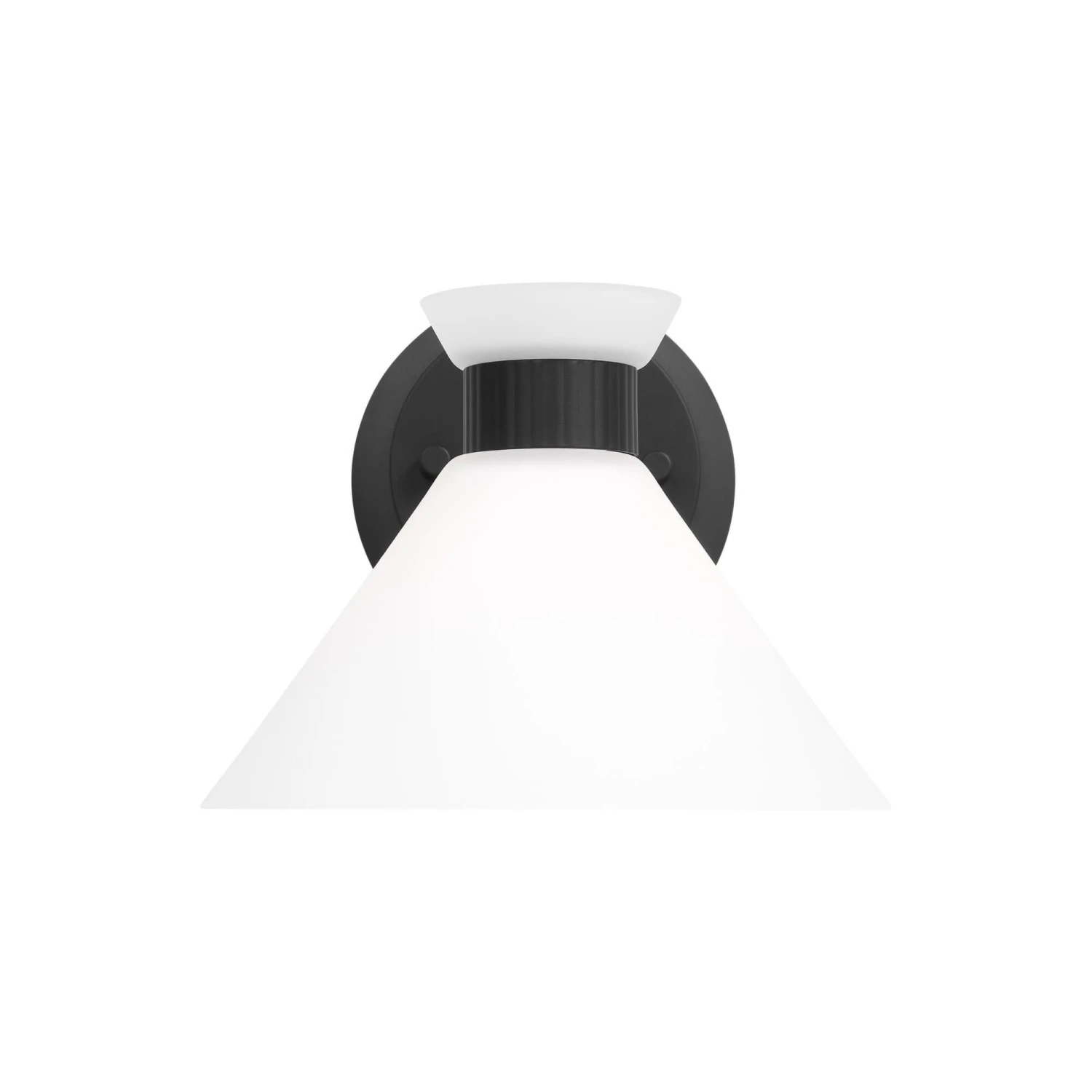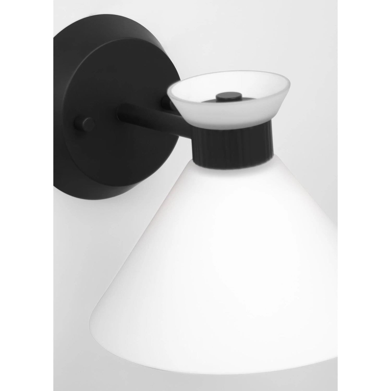 Inspired by playful mid-century modern design, the Drew and Jonathan Belcarra Small Sconce is accentuated by a flared glass shade with ribbed metal details and etched white glass that bestows an almost whimsical touch to the clean design. Available in three finishes, Brushed Steel, Midnight Black, and Satin Brass, the Belcarra looks great on its own or installed above a bathroom vanity. This fixture may be mounted in the up or down position, and is cETLlistedfordamp locations, making it the perfect lighting solution for any space.
